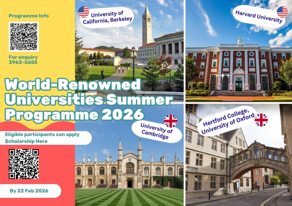 Scholarship for World-Renowned Universities Summer Programme 2026 is now open for applications. Please click HERE for details and apply by 22 Feb 2026.