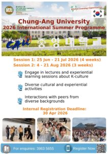 - Be sure to check our website and respective programmes’ websites regularly for the latest information. If there are any inconsistencies or discrepancies, information provided by the host institutions shall prevail.