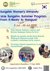 2026 Sungshin Summer Program: From K-Beaty to Hangual