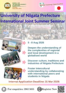 The University of Niigata Prefecture will bear all the relevant costs of transportation and field trips as well as cultural exchanges during the program for all participants. Accommodation in Niigata during the programme (4-7 Aug 2026) will be provided for the participants who come from outside of Niigata.