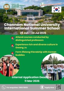 - Upon nomination of GAO, participants need to submit online application to CNU (HERE) by 27 Mar 2026.