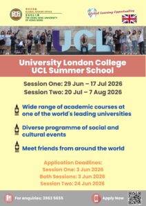 The UCL Summer School 2026 offers a unique opportunity for students to engage in a diverse range of academic courses at one of the world’s leading universities – University College London in the UK, which ranked the 9th globally (QS 2026). Besides an academic experience, it also provides a diverse programme of social and cultural events in the evenings and at the weekends.
