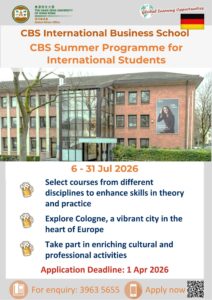 - Final year applicants who would like to attend any summer programmes endorsed by HSUHK should remain as a HSUHK student within the summer programme duration and are advised to apply for graduation upon completion of summer programme. Info on application for graduation is available at the Registry’s website. For UG students, please click HERE. For TPG students, please click HERE.