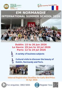 - Fill in the registration form by clicking HERE. GAO will nominate students to EM Normandie International Summer School;