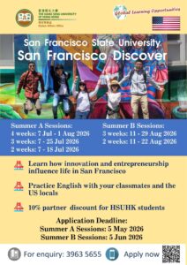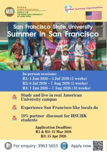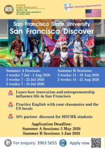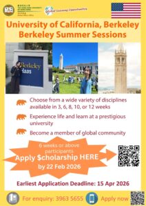 - Click HERE to apply via UC Berkeley (priority application for partner universities opens on 2 Feb). Remember to affiliate yourself with HSUHK in the application to enjoy affiliate benefits;